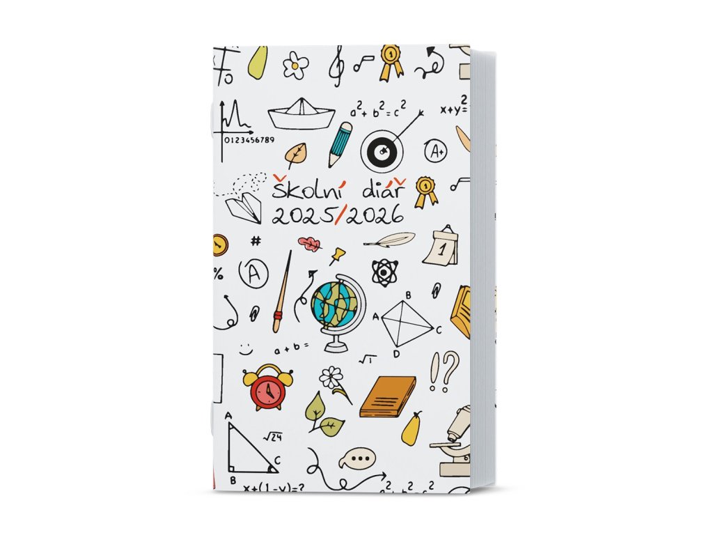 školní diář s moderní grafikou pro školáky • všechno důležité pro školáky pohromadě - rozvrh hodin, chemické prvky a také pravopis českého jazyka • kalendárium: měsíční fáze, roční období, letní a zimní čas, citát na každý týden • informační stránky: osobní údaje, důležitá tel. čísla, čtvrtletní plánování, tabulkový kalendář aktuálního a následujícího, věčný kalendář, jmenný seznam, znamení zvěrokruhu, prostor na narozeniny a jmeniny, něco z matematiky, pravopis českého jazyka, periodická soustava prvků, něco málo z chemie, adresář, prostor na poznámky a úkoly, telefonní obvody, informační a komerční servis, odjezdy a příjezdy, rozvrh hodin • rozměr: 90x150 mm • BTK9-3-26PLU: 183630