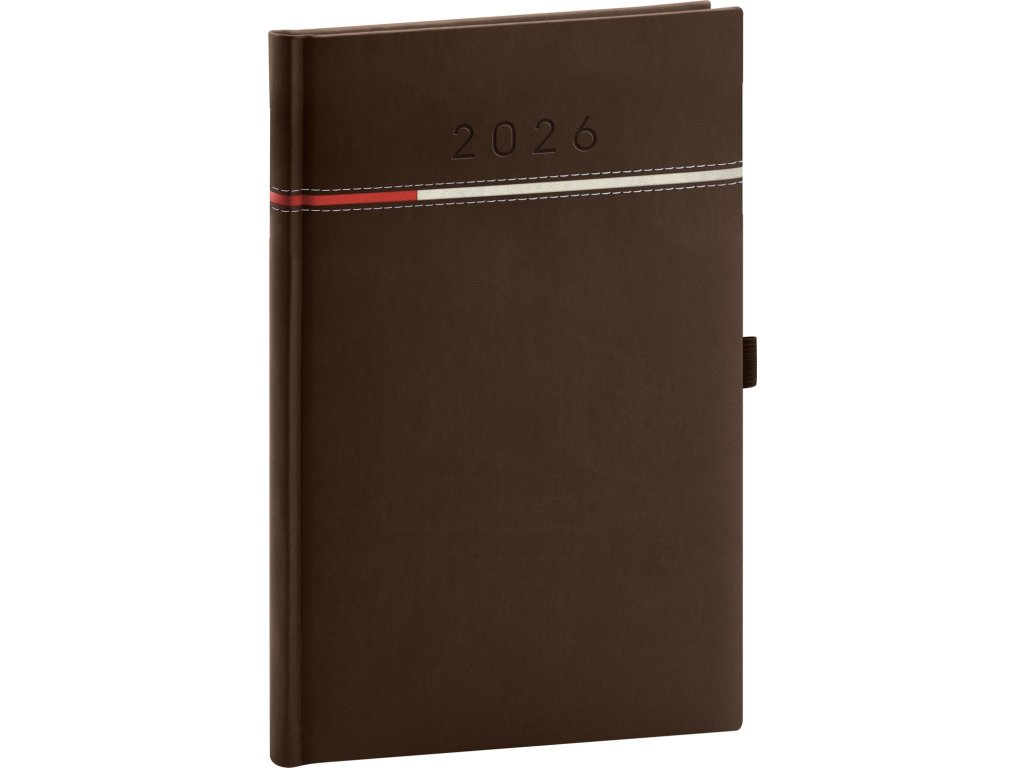 Týdenní diář Tomy 2026, hnědo-červený, 15 x 21 cm