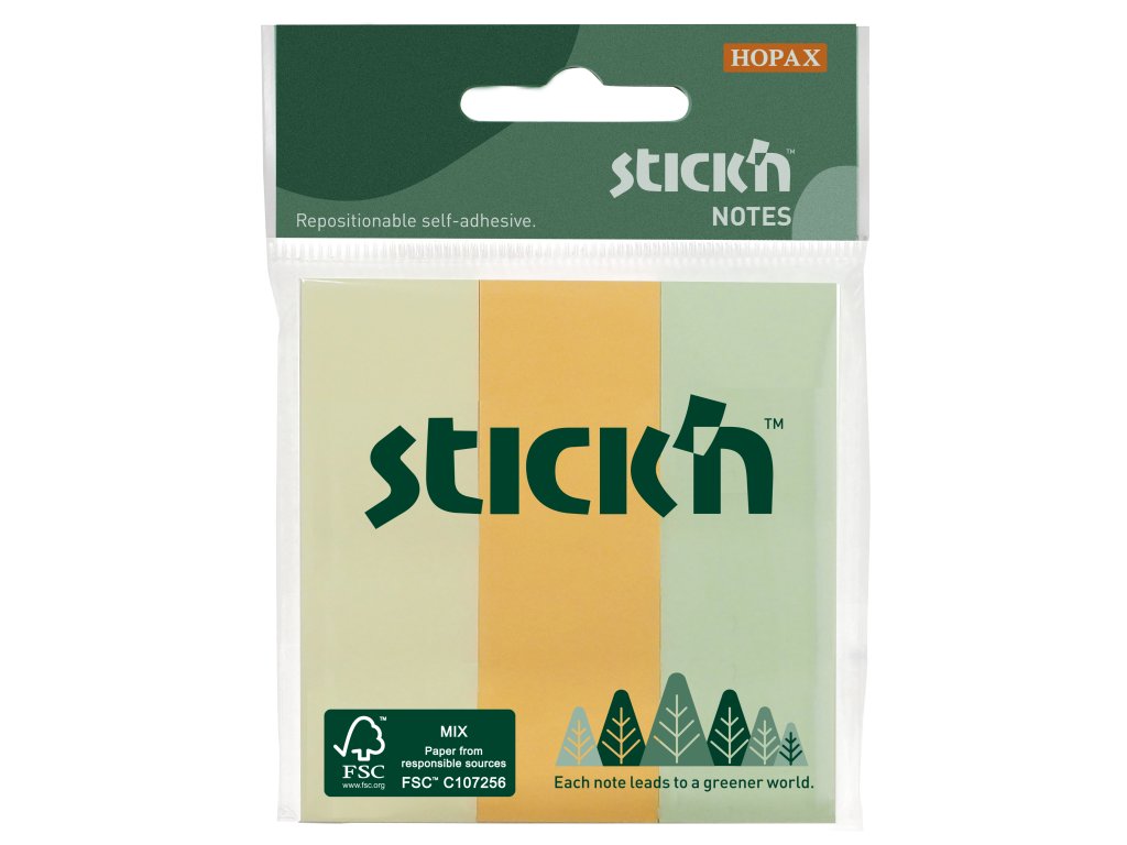 rozměr 76 x 25 mm • vyrobeny z papíru, který pochází z ekologicky obhospodařovaných lesů • lepidlo na vodní bázi • certifikace FSC • 3 x 50 lístků v balení • barva pastelový mixPLU: 129905